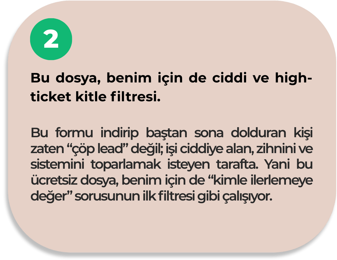 3. High-Ticket Müşteri İçin Filtre Görevi Görür
